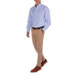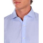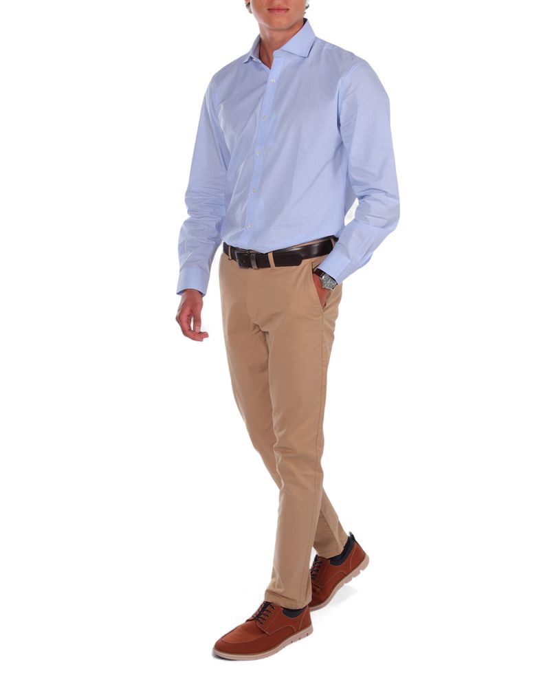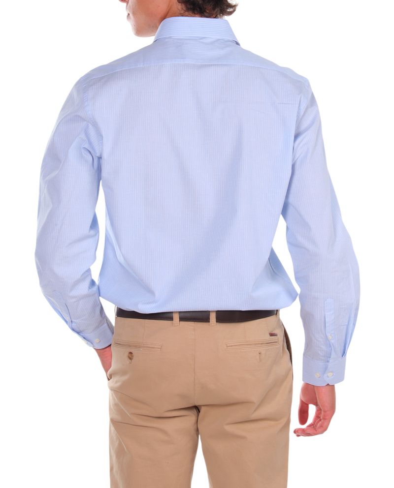 Camisa formal de la marca DKNY, prenda en color celeste con diseño rayado.