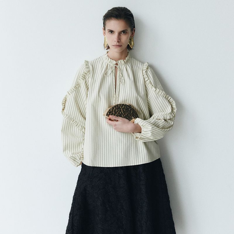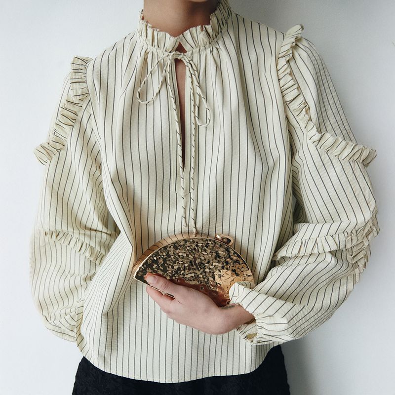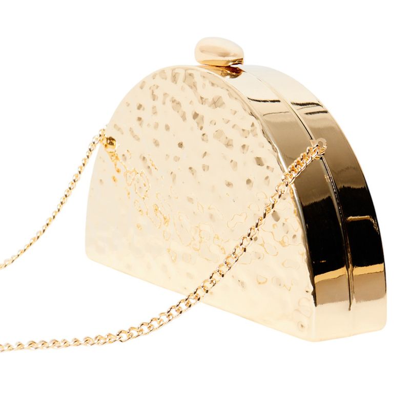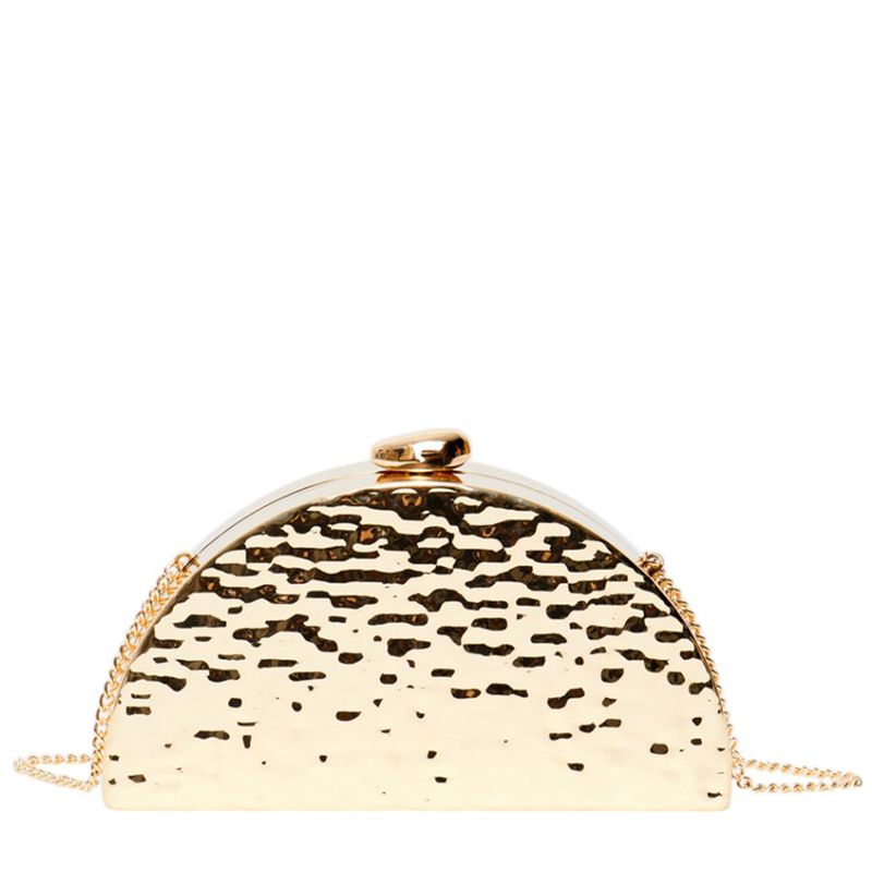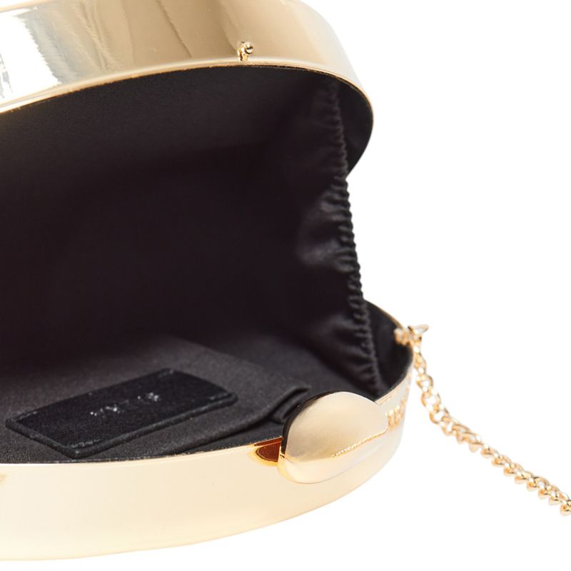 Incorpora una correa con diseño de cadena en tono dorado, ideal para llevarla al hombro o cruzada.