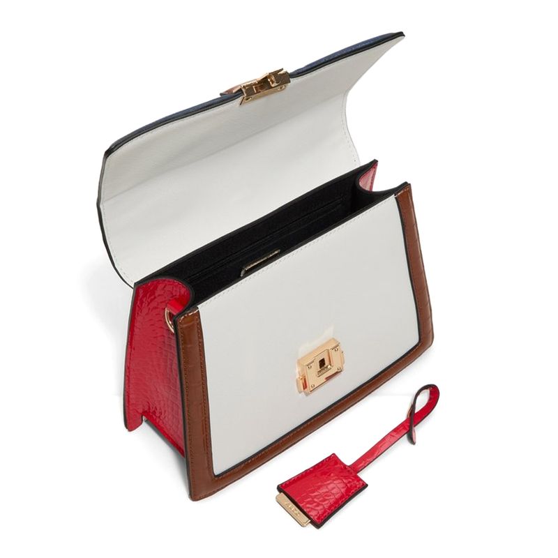 La cartera satchel Aldo multicolor es una opción fresca y colorida que aporta un toque de alegría a cualquier conjunto. Los detalles dorados en los herrajes y adornos le dan un toque de sofisticación, elevando su diseño. La combinación de colores la convierte en una pieza versátil y fácil de combinar con diferentes estilos. Esta cartera incluye un asa superior para llevarla de manera tradicional y una correa ajustable y extraíble para mayor comodidad y versatilidad. El cierre con pulsador garantiza la seguridad de tus pertenencias, mientras que el interior cuenta con un bolsillo de cremallera, ideal para organizar objetos pequeños y valiosos. Con su diseño funcional y elegante, esta cartera es perfecta para quienes buscan una opción práctica y estilizada.