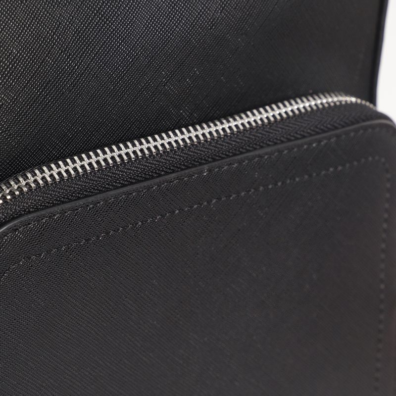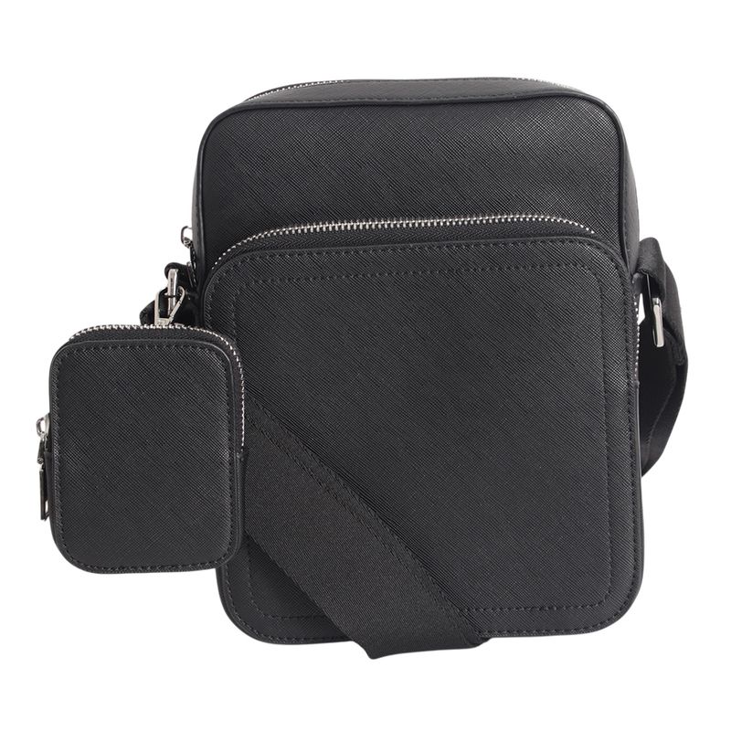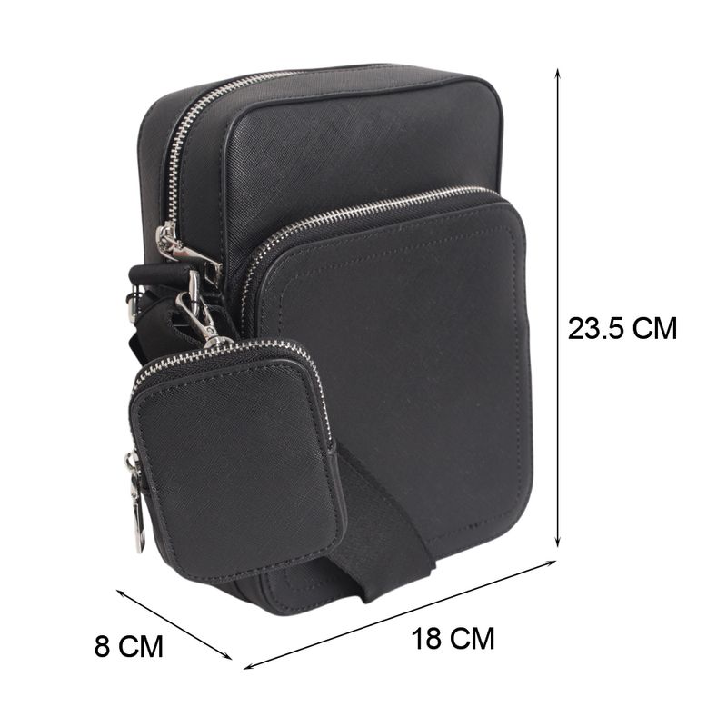 Destaca con este bolso en color negro de diseño compacto y acabado texturizado que combina elegancia y practicidad. Cuenta con compartimentos con cierre para mantener tus esenciales organizados y un monedero desmontable con gancho metálico para mayor versatilidad. Su estilo moderno lo hace ideal para el uso diario, salidas casuales o viajes ligeros. Un accesorio funcional y sofisticado que complementa cualquier look.
