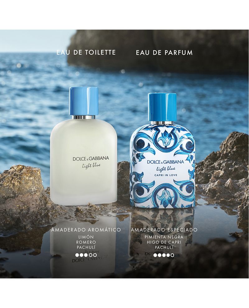 Dolce&Gabbana Light Blue Pour Homme Eau de Toilette encarna el espíritu aventurero y dinámico del hombre moderno en una fragancia fresca y vibrante. Sus notas evocan una mezcla mediterránea, donde el aromático romero se envuelve suavemente en cítricos efervescentes y el encanto seductor del pachulí.