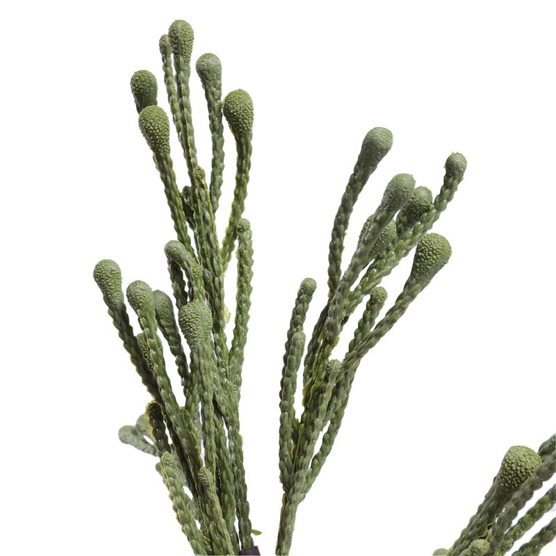 Es una réplica de una planta real, pero fabricada con materiales sintéticos como plástico, tela, polímeros, y a veces incluso seda. Estas plantas están diseñadas para parecerse lo más posible a las naturales, con detalles como hojas, tallos y flores que imitan fielmente la apariencia de las plantas vivas.