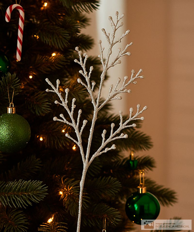 • Medida: 81 x 20 x 5 cm • Color: champagne nevado, ideal para una ambientación invernal. • Uso: perfecta para centros de mesa, coronas o arreglos florales. • Material: resistente y de aspecto natural.