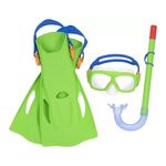 Set de snorkel Bestway es ideal para quienes buscan explorar el mundo submarino. Este kit incluye aletas, máscara y tubo de respiración, todo diseñado con un enfoque en la comodidad y el rendimiento. Las aletas son de un vibrante color verde y cuentan con un diseño ergonómico que facilita la propulsión en el agua, lo que permite nadar con mayor facilidad. La máscara, también en tonos verdes, tiene un sellado suave que se adapta a diferentes formas de rostro, garantizando un ajuste seguro para evitar filtraciones. El tubo, de color azul claro, permite una respiración cómoda y eficiente, mientras que su estructura minimiza la entrada de agua. Este set es perfecto tanto para principiantes como para snorkelistas experimentados, brindando una experiencia de buceo placentera y segura. Ideal para días de playa, vacaciones familiares o aventuras marinas, es el complemento perfecto para disfrutar del océano.