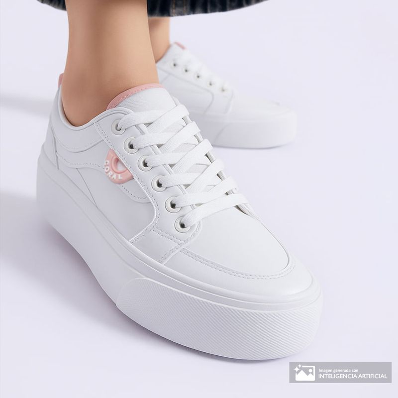 Este zapato casual Coral en color blanco para mujer combina estilo urbano con funcionalidad moderna. Su diseño limpio y versátil cuenta con cierre de cintas para un ajuste seguro, mientras que la suela alta y gruesa aporta un toque contemporáneo que estiliza la silueta y brinda mayor presencia al caminar.